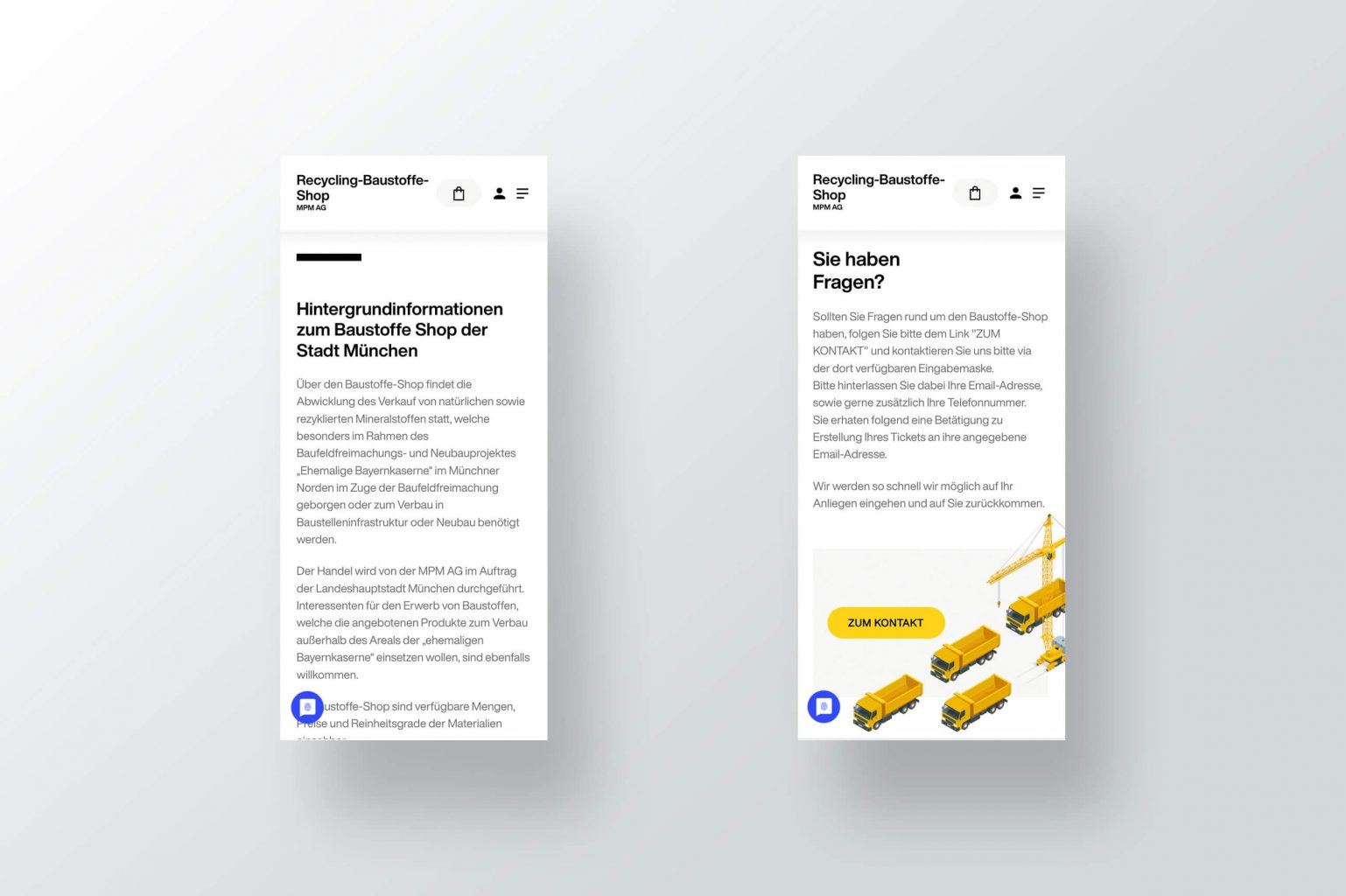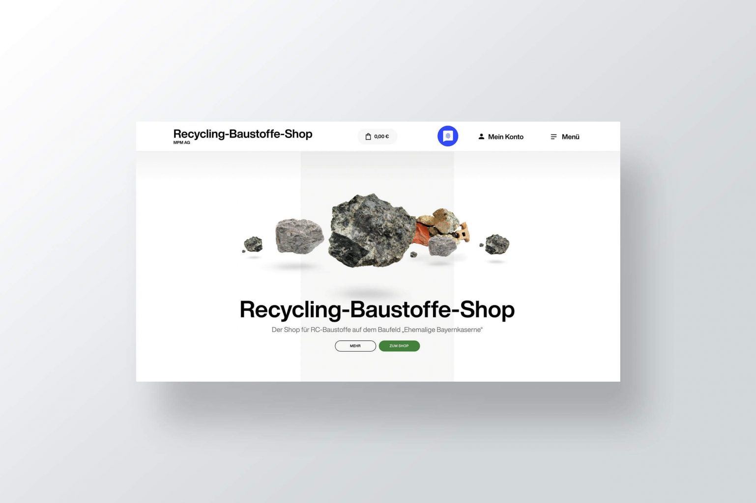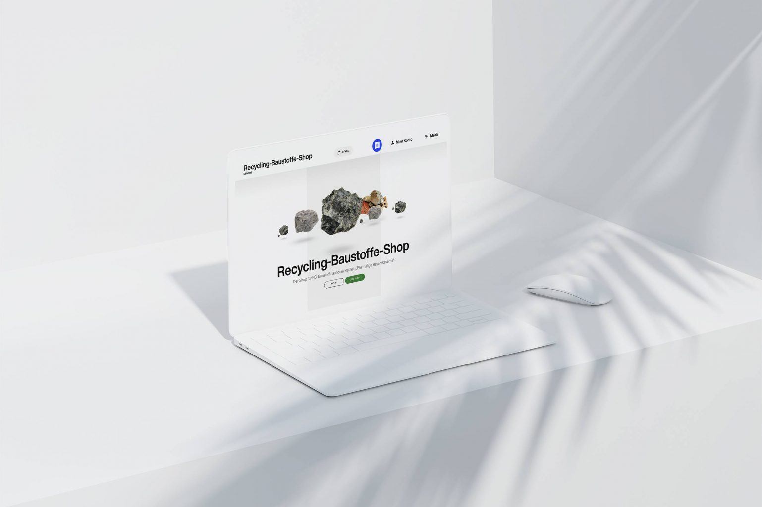 Die Idee zum finalen Keyvisual kam uns tatsächlich sehr schnell – nach einem frühen Termin auf dem ehemaligen Bayernkaserne-Gelände erstellten wir diverse Fotos der Materialien für den Shop. Doch diese einfach nur 1:1 in den Shop zu laden, wäre uns schlicht zu plump gewesen – die Idee zum 3D-Material wurde geboren. Neben der kreativen Idee lag der Fokus in der Gestaltung jedoch klar auf der Usability, es sollte sich jeder einfach und gut im Onlineshop zurecht finden. Illustrationen, Farben und Typografie runden dann das gesamte Look and Feel ab.
