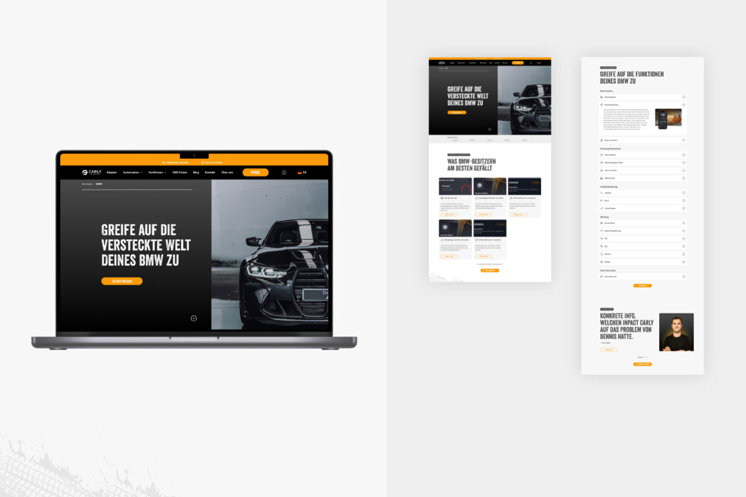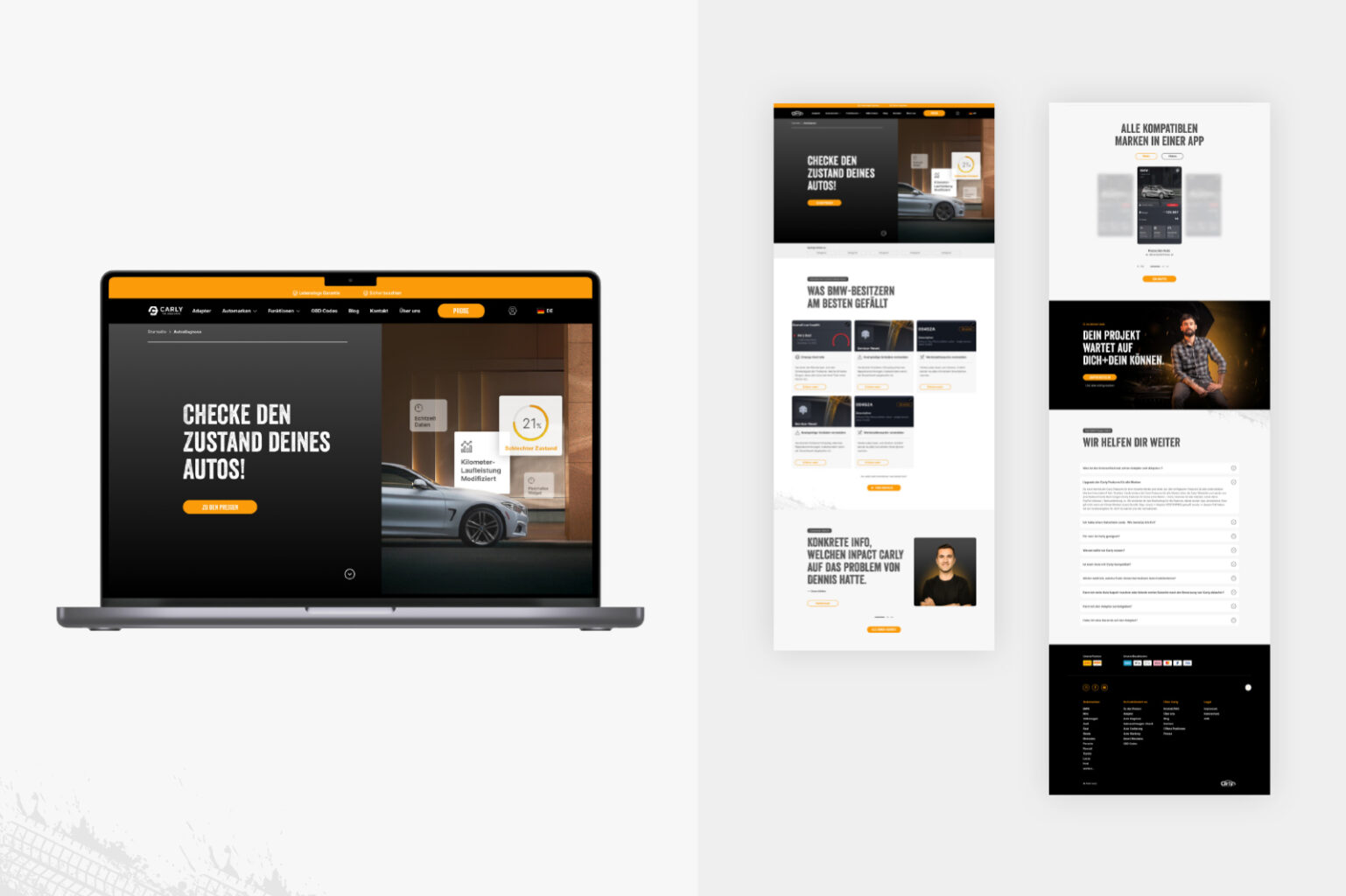 Als Ergebnis präsentieren wir nicht nur eine neu gestaltete Webseite, sondern zudem eine messbar besser performende Gesamtlösung für Carly, gleichwohl ein Uplift der Performance noch nicht Teil der Ziele von Carly war. Nutzer werden ansprechender Informiert und bekommen an den richtigen stellen Mehrwert vermittelt. Dabei umfasst unser Redesign nahezu alle Haupt- und Unterseiten der Page, wenngleich der Checkout-Prozess ebenfalls noch nicht überarbeitet und von pixelperfektion optimiert wurde.