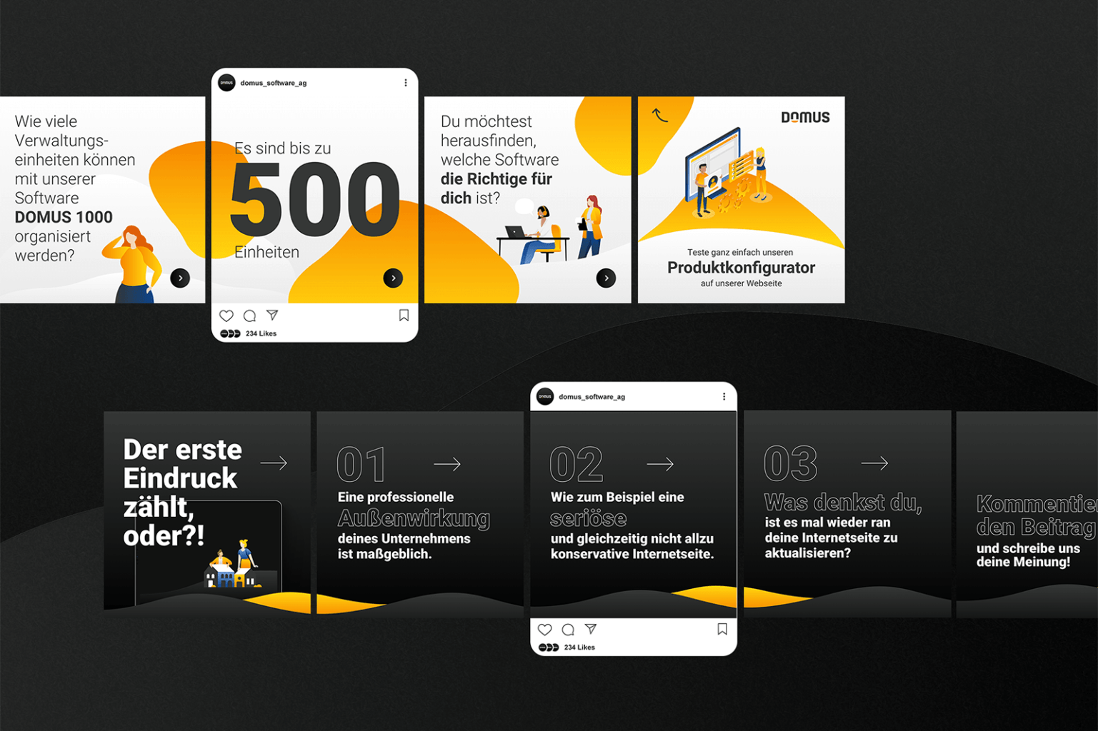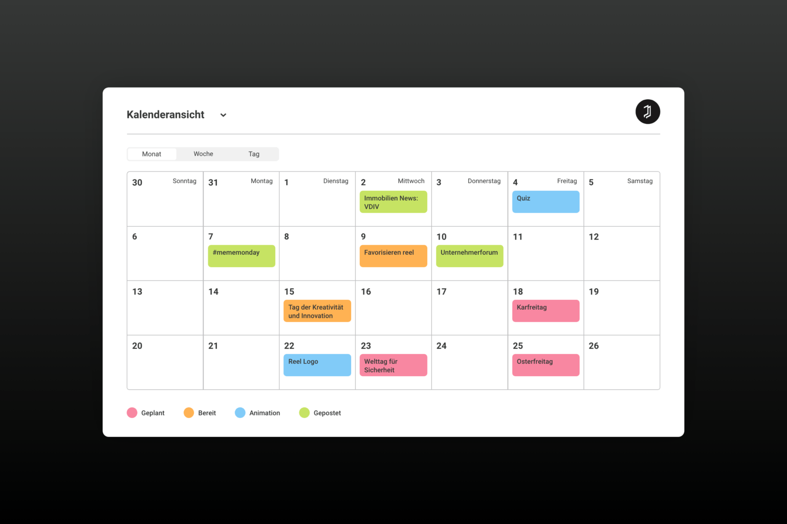 Um nicht nur statische Beiträge zu posten, sondern auch ein Stück Reichweite vom Alogrithmus-Kuchen abzubekommen, setzen wir strategische Animationen in Format von Stories und Reels um. Dabei ist eine gezielte Planung das A und O, Monat für Monat wird hierbei ein Redaktionsplan aufgesetzt, um immer einen Überblick zu bewahren.