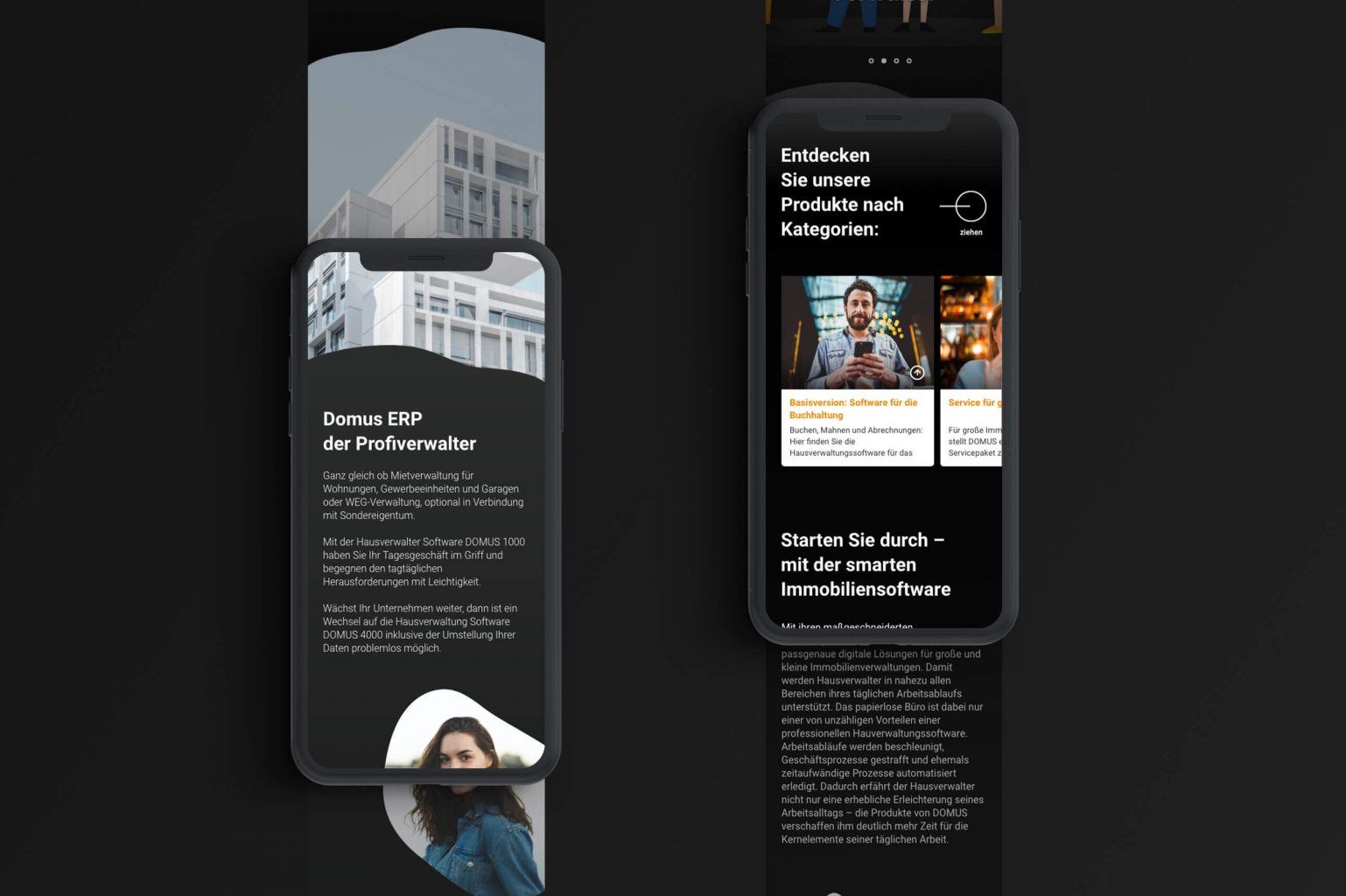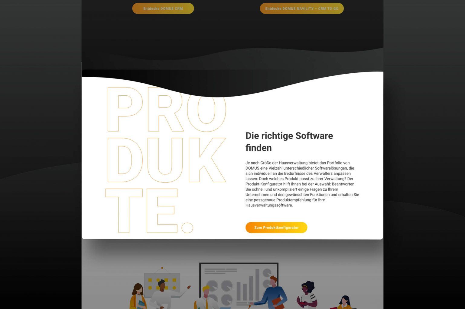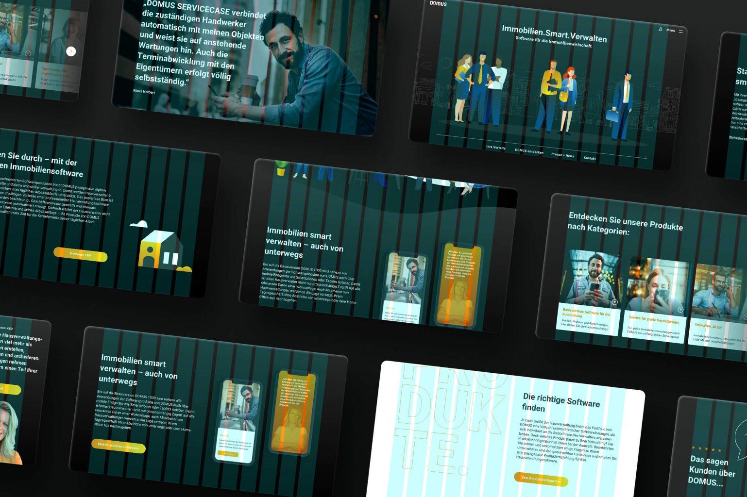 Als das umfangreiche Webdesign final im Klickdummy responsive präsentiert & abgenommen wurde, konnte im nächsten Step das Design inhouse von unserer IT entwickelt werden. Die Basis für das System liefert eine hoch individualisierte Version des bekannten CMS WordPress. Mit diesem ist es uns möglich, alle Anforderungen der DOMUS Software AG technisch unter einen Hut zu bekommen und dabei Sorge zu tragen, dass Inhalte & Kundendaten bequem, sicher und intuitiv verwaltet werden können.
