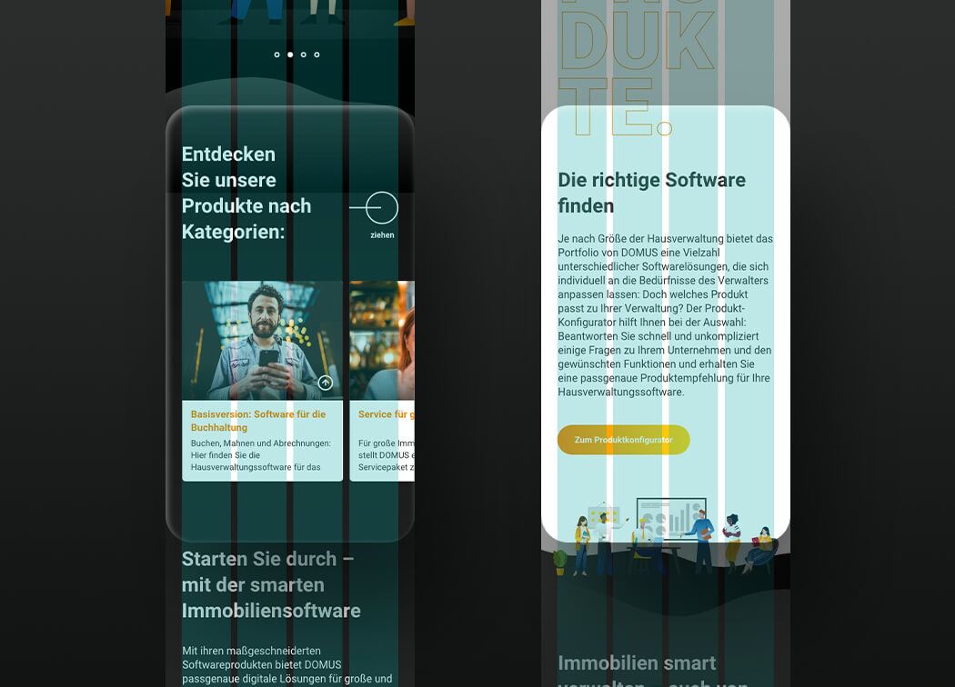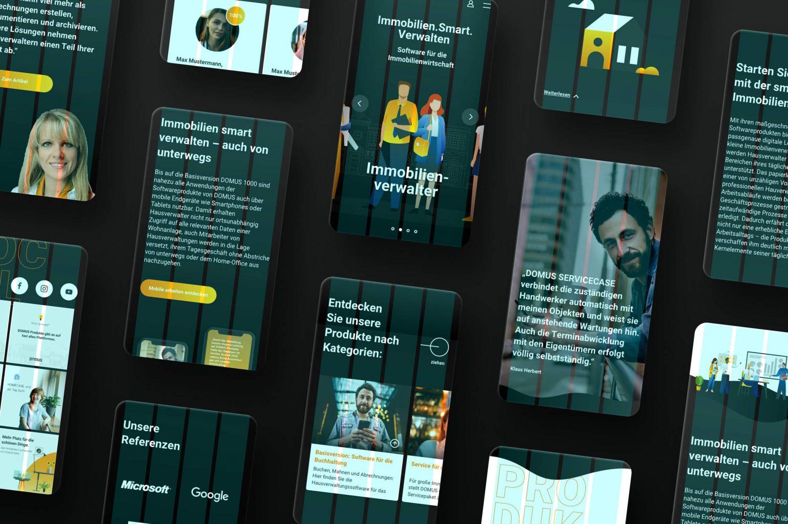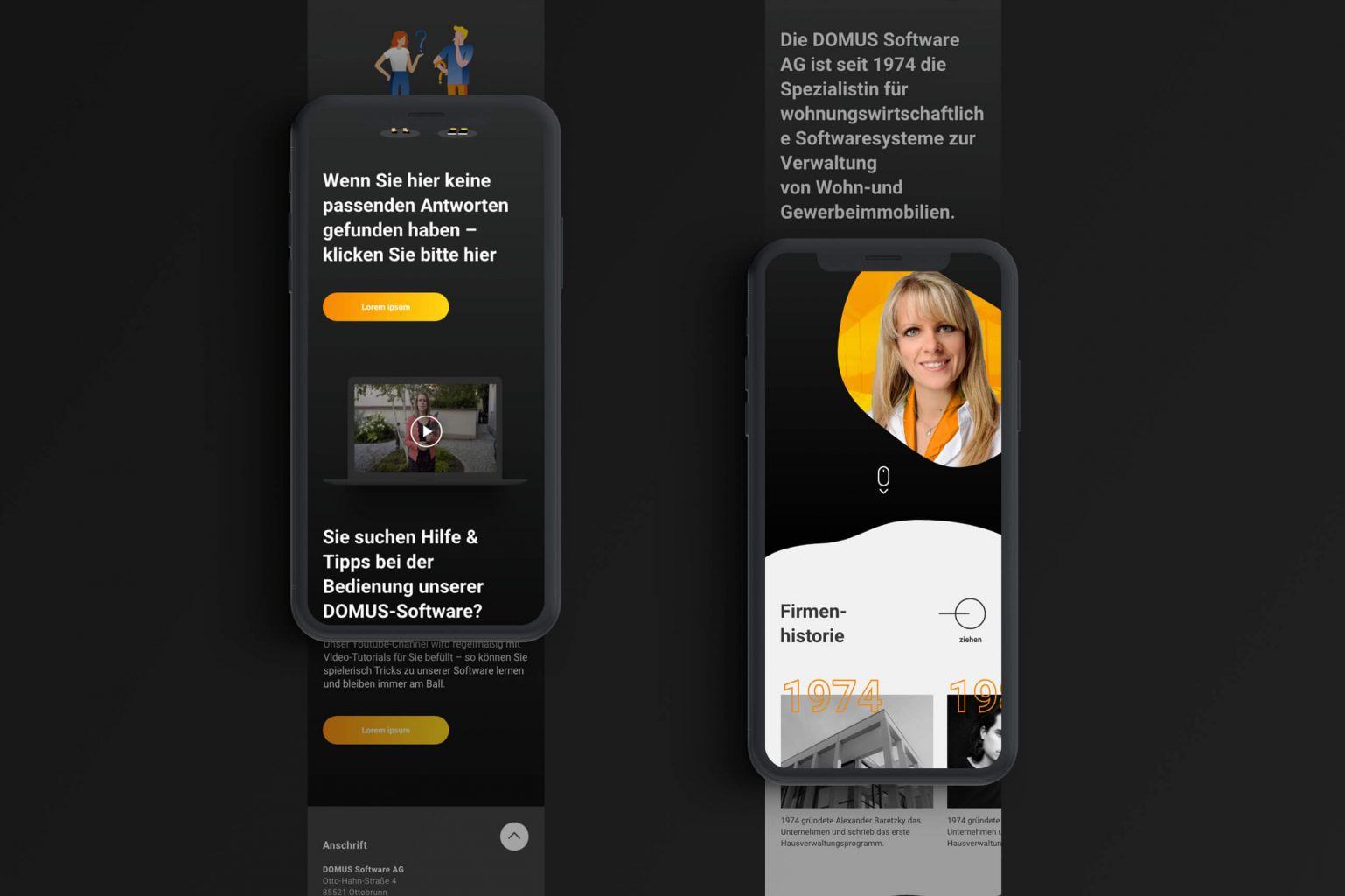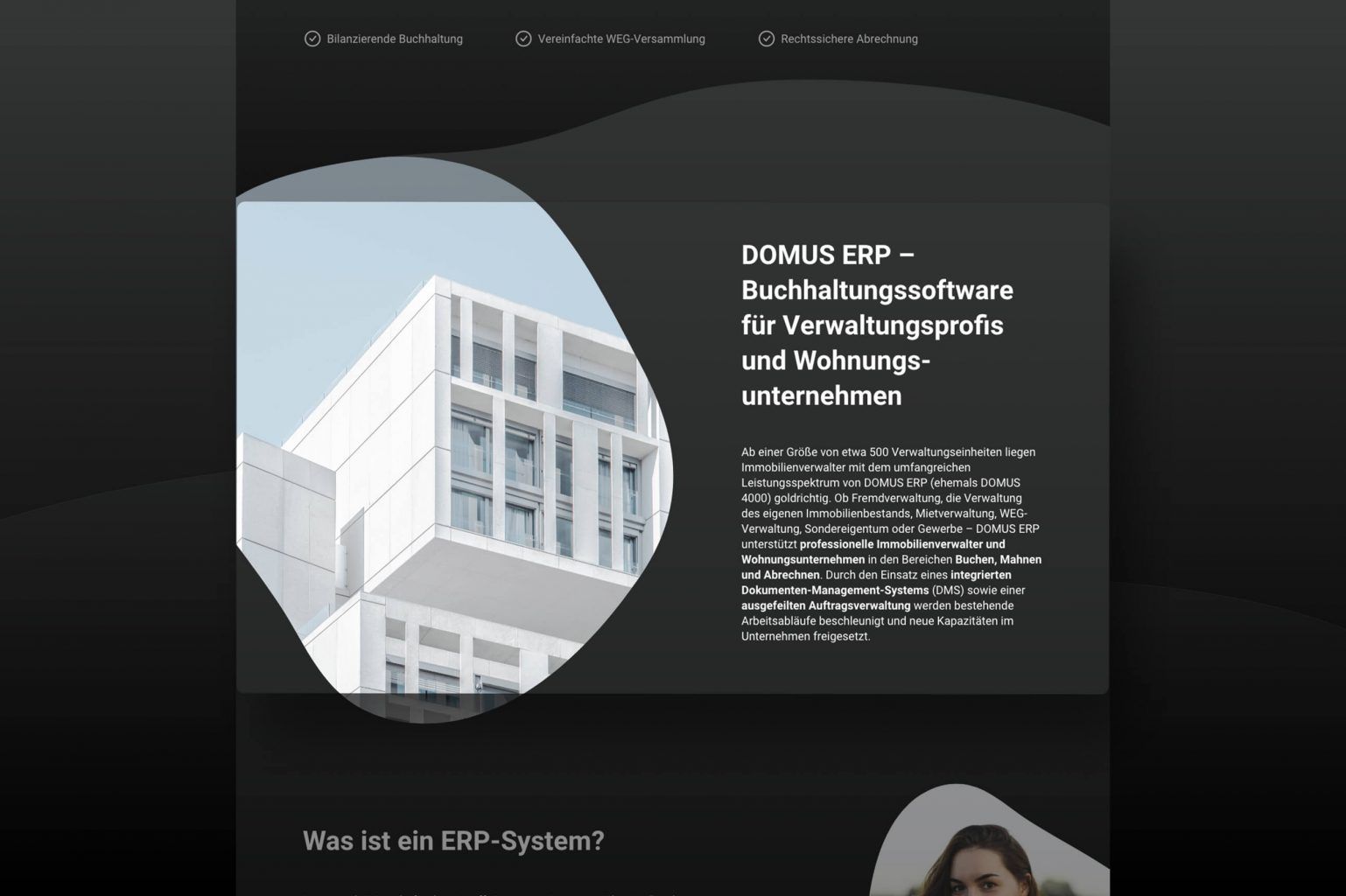 Als das umfangreiche Webdesign final im Klickdummy responsive präsentiert & abgenommen wurde, konnte im nächsten Step das Design inhouse von unserer IT entwickelt werden. Die Basis für das System liefert eine hoch individualisierte Version des bekannten CMS WordPress. Mit diesem ist es uns möglich, alle Anforderungen der DOMUS Software AG technisch unter einen Hut zu bekommen und dabei Sorge zu tragen, dass Inhalte & Kundendaten bequem, sicher und intuitiv verwaltet werden können.