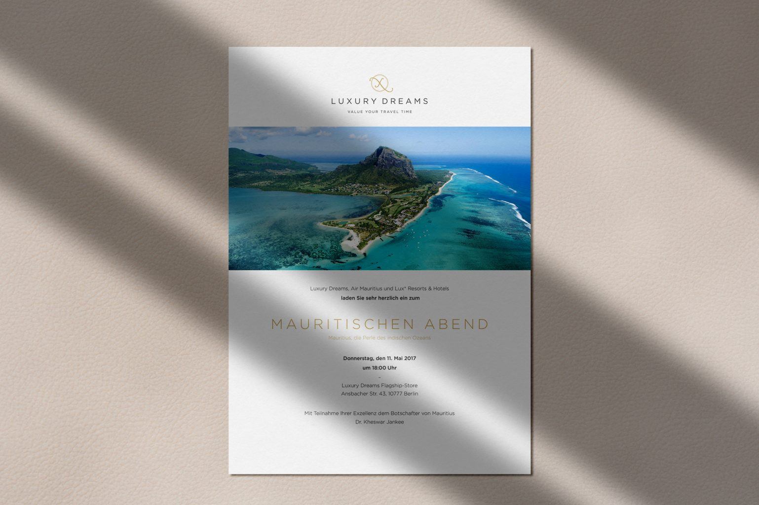 Pixelperfektion lernte das Berliner Reisebüro 2016 kennen und begann mit einem kompletten Redesign des Brandings von LUXURY DREAMS. Angefangen bei der Gestaltung des Unternehmenslogos, Typografie, Sonderfarben, Bildwelten und dem visuellen Look and Feel. Ergänzend dazu, wurde auch eine haptische Welt definiert – mit ausgewählten Papiersorten und Prägungen. Ein Konzept dass wir auf die umfangreiche Geschäftsausstattung des Unternehmens ausbreiten durfen.