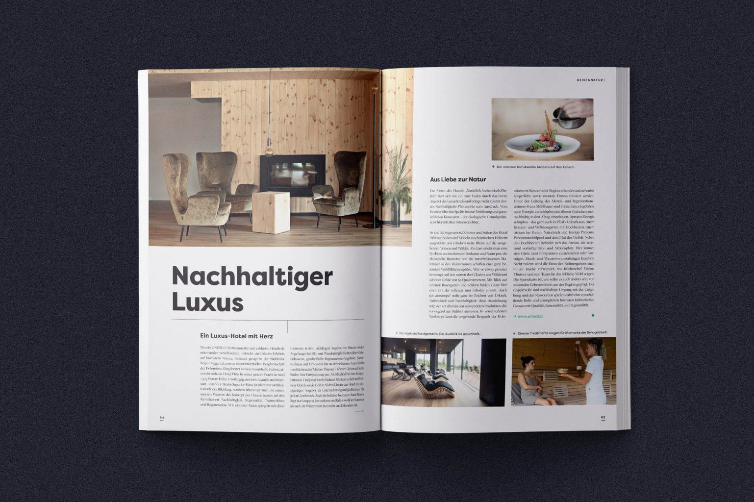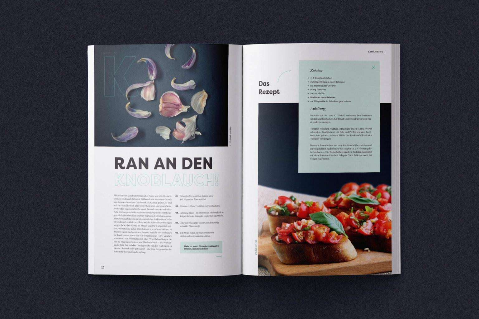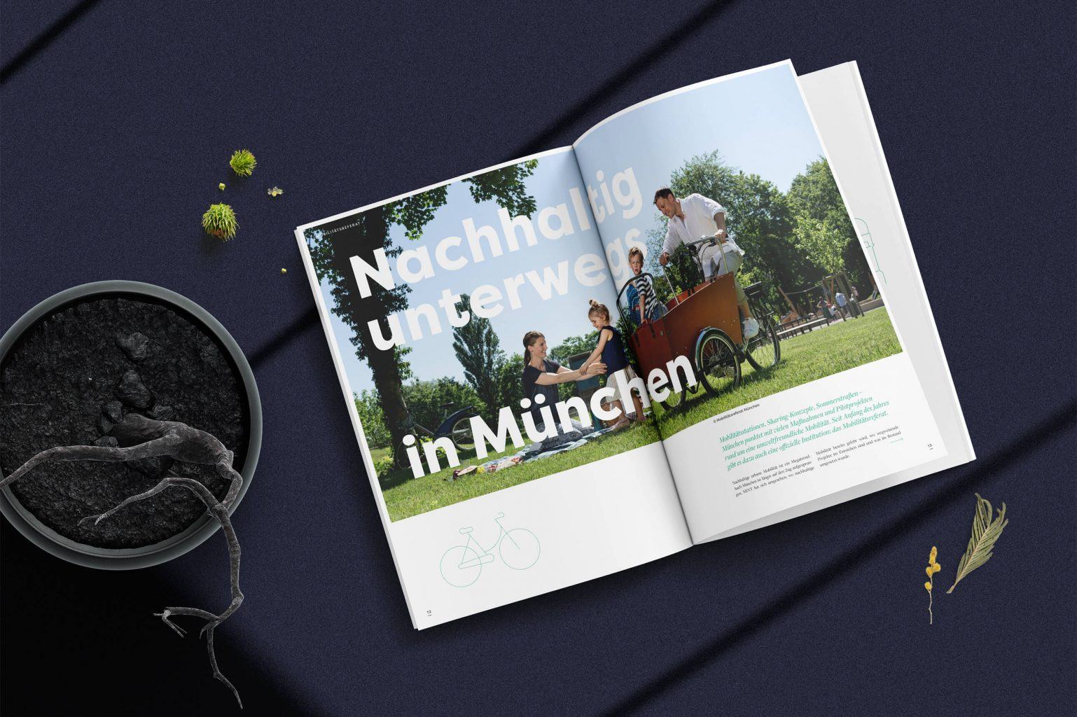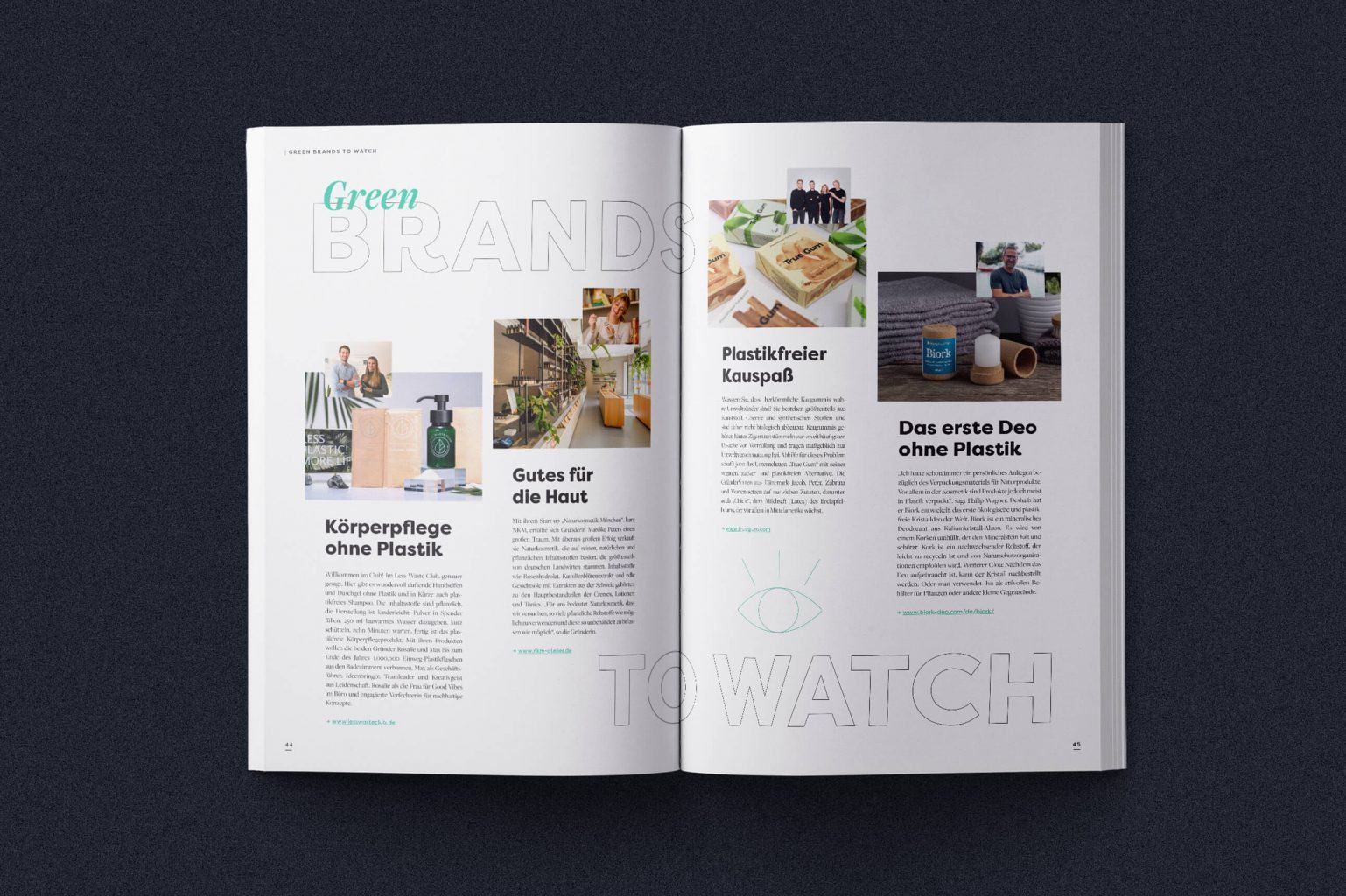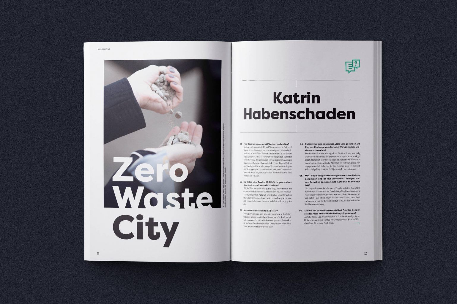 Das Magazindesign selbst sollte natürlich zur Message der Münchner passen und deren Inhalte gut auf dem recycelten Papier transportieren. So finden heute verschiedene Stories Platz im Heft. Dabei entwickelten wir das Design bewusst so, dass stets für Abwechslung gesorgt ist und ein magaziniger, moderner Charakter dem Heft zugeschrieben wird.