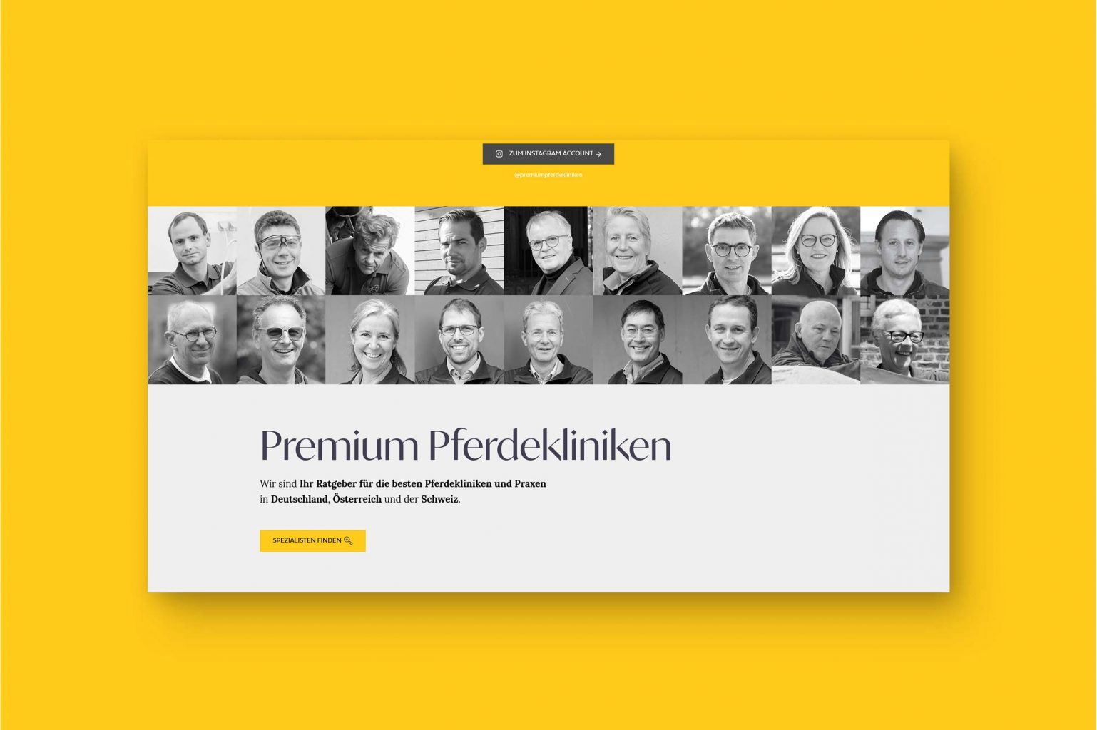 Der Verbund Premium Pferdekliniken hat es sich deshalb zur Aufgabe gemacht, den Suchenden bei diesem Problem zu unterstützen. Pixelperfektion übernimmt hierbei das Branding für Premium Pferdekliniken und gestaltet initial eine individuelle Schrift- sowie Bildmarke für den Verbund. Neben dem handgezeichneten Logo definieren wir Step by Step den gesamten Look and Feel inkl. Farb- sowie Typowelt und beginnen anschließend den digitalen Webseitenauftritt von Premium Pferdekliniken maßgeschneidert zu gestalten.