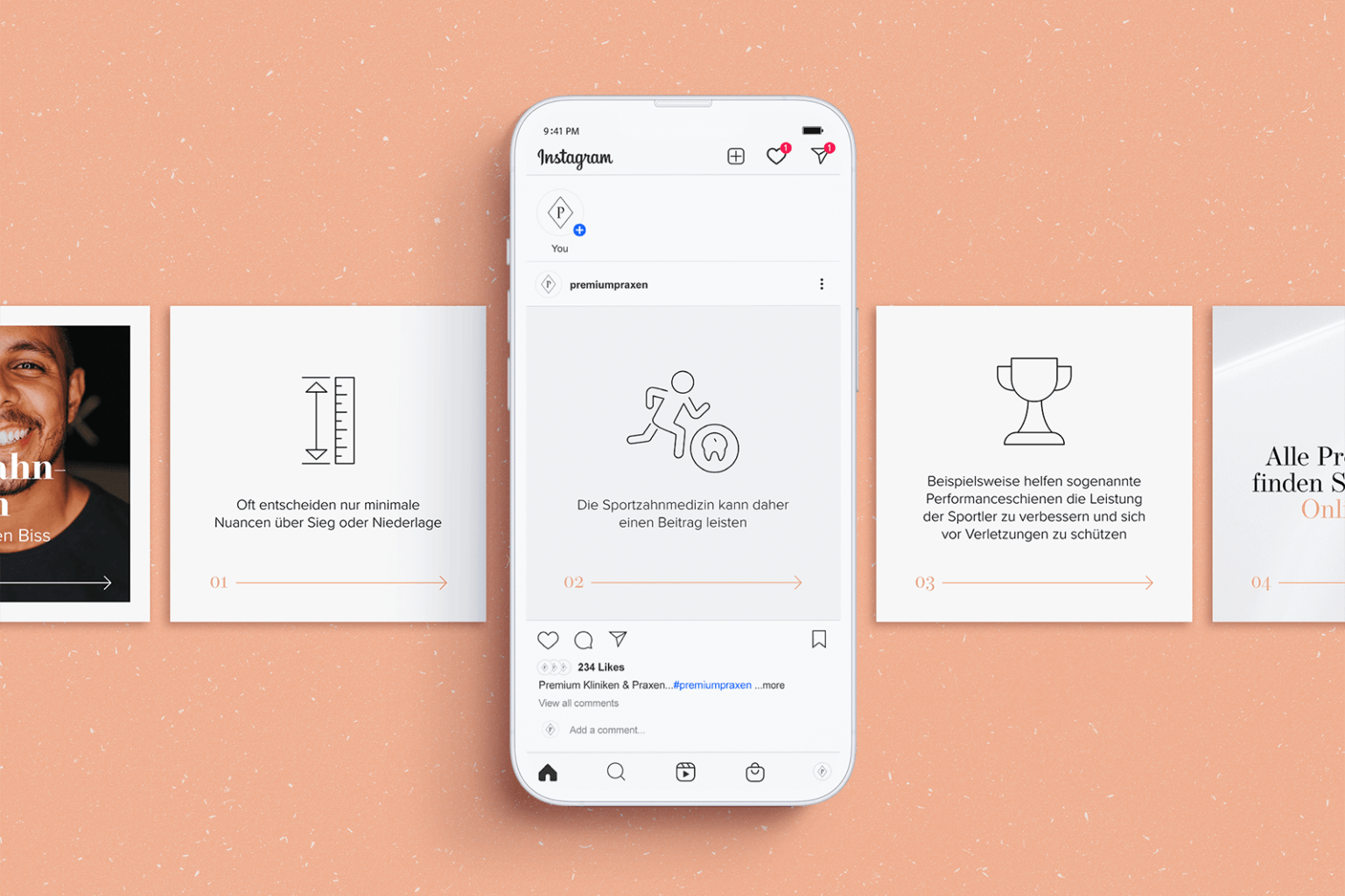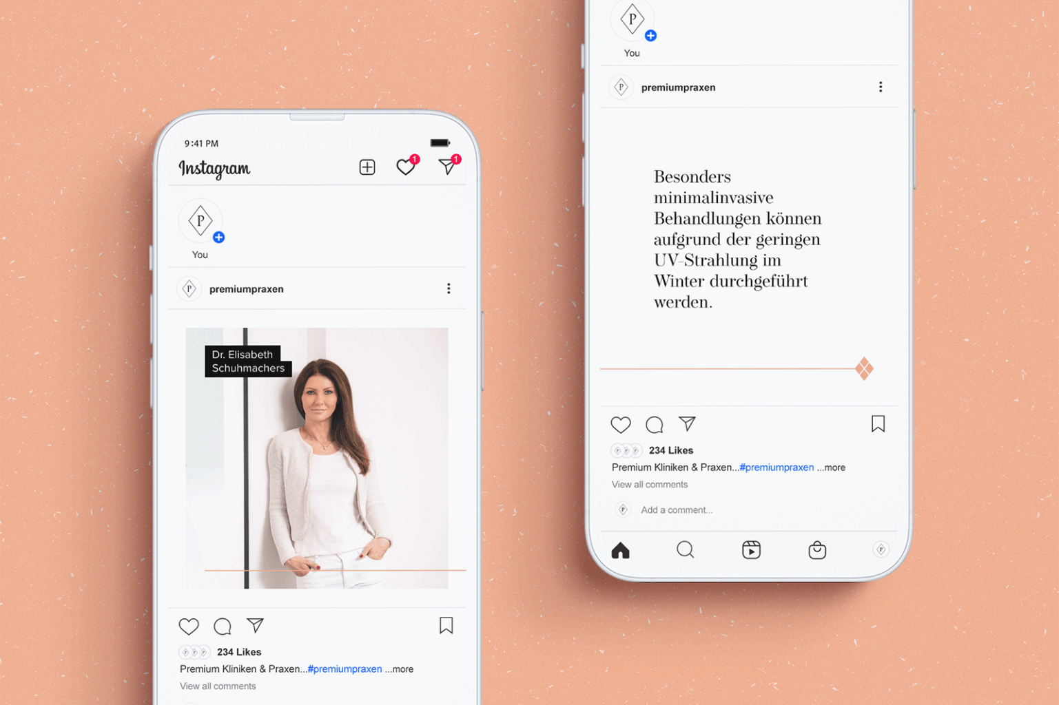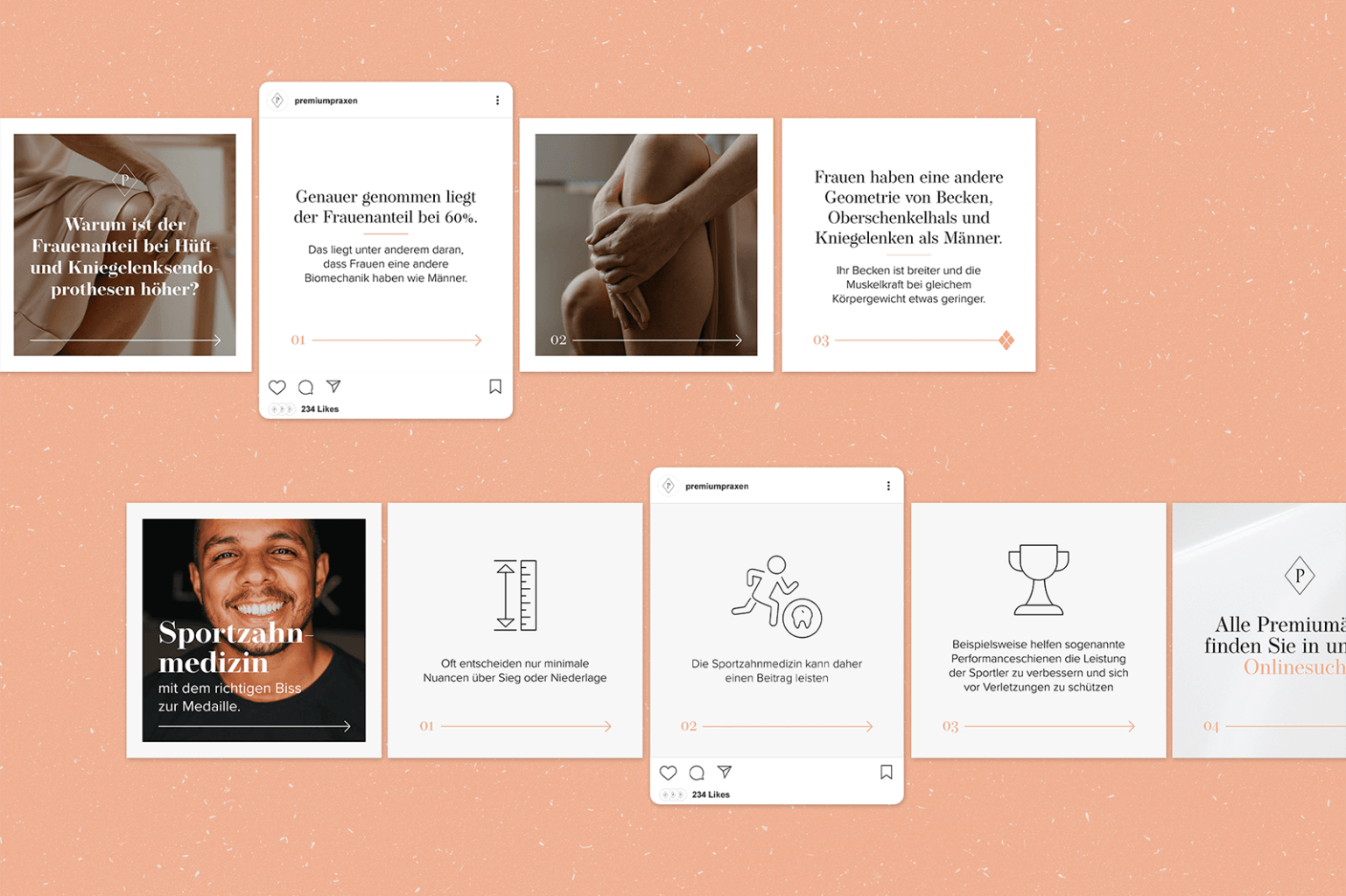 Hier soll einerseits auf die erstklassigen Ärzt:innen aufmerksam gemacht werden, aber auch Wissenswertes geteilt, um den Usern einen Mehrwert zu bieten. Dabei werden in Absprache Themen geteilt, die von uns optisch aufbereitet und zugleich gepostet werden. Sozusagen das Rundum-Sorglos-Paket für Instagram & Co. So einfach kann Social Media sein.