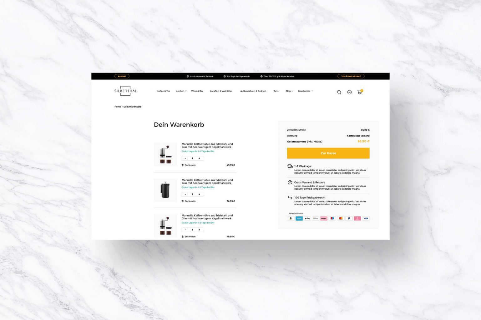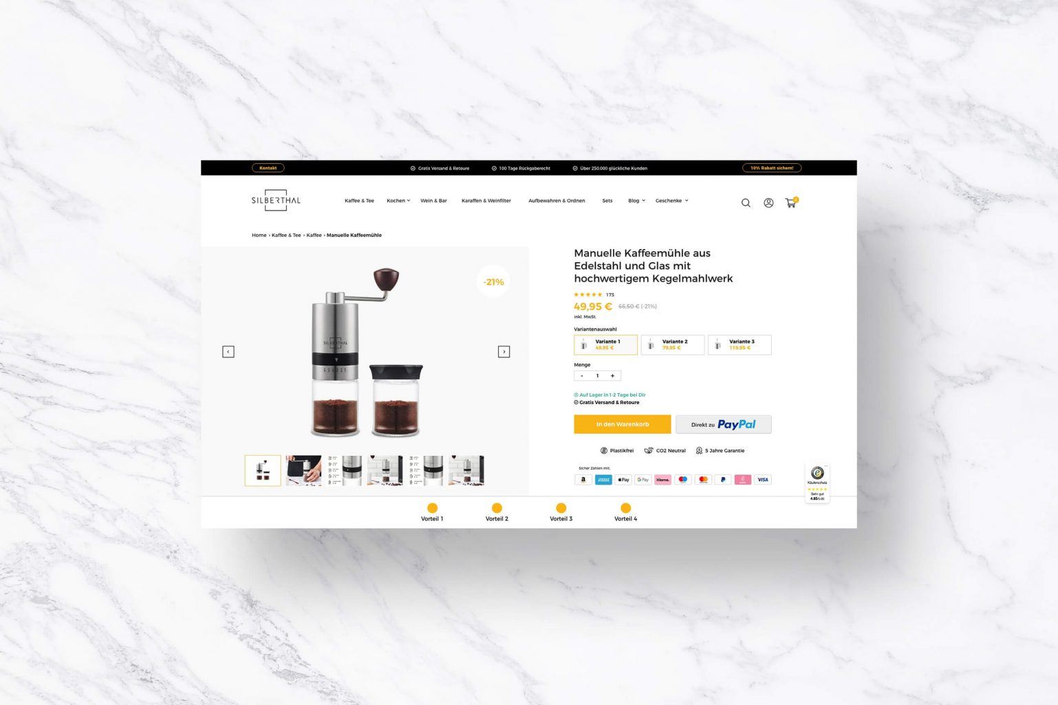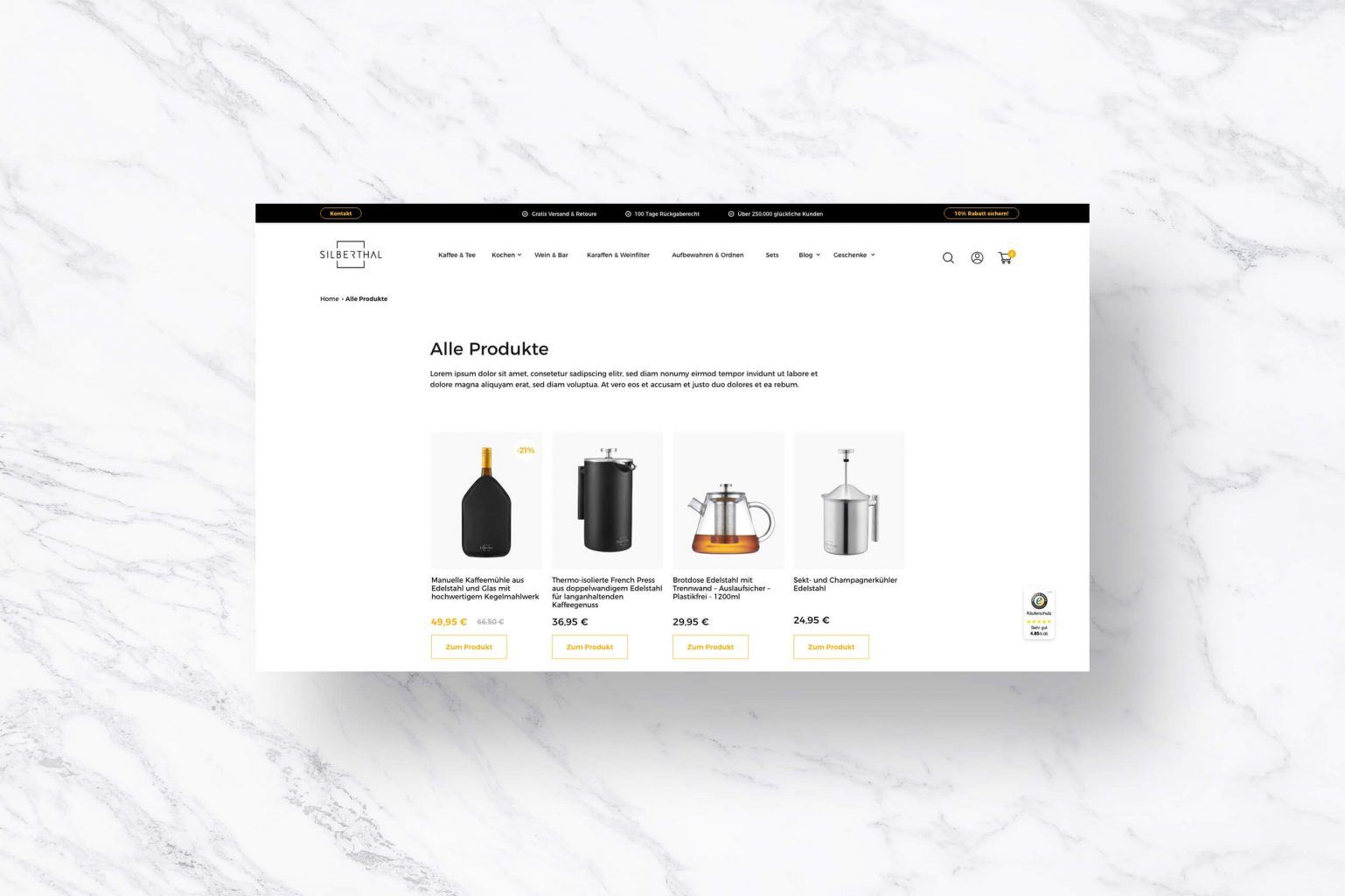 So ist das neue Shop-Design auf Shopify-Basis für Silberthal geworden. Wir freuen uns die nächsten 250.000 zufriedene Kunden, und viele viele mehr mit dem neuen Webdesign begrüßen zu dürfen.