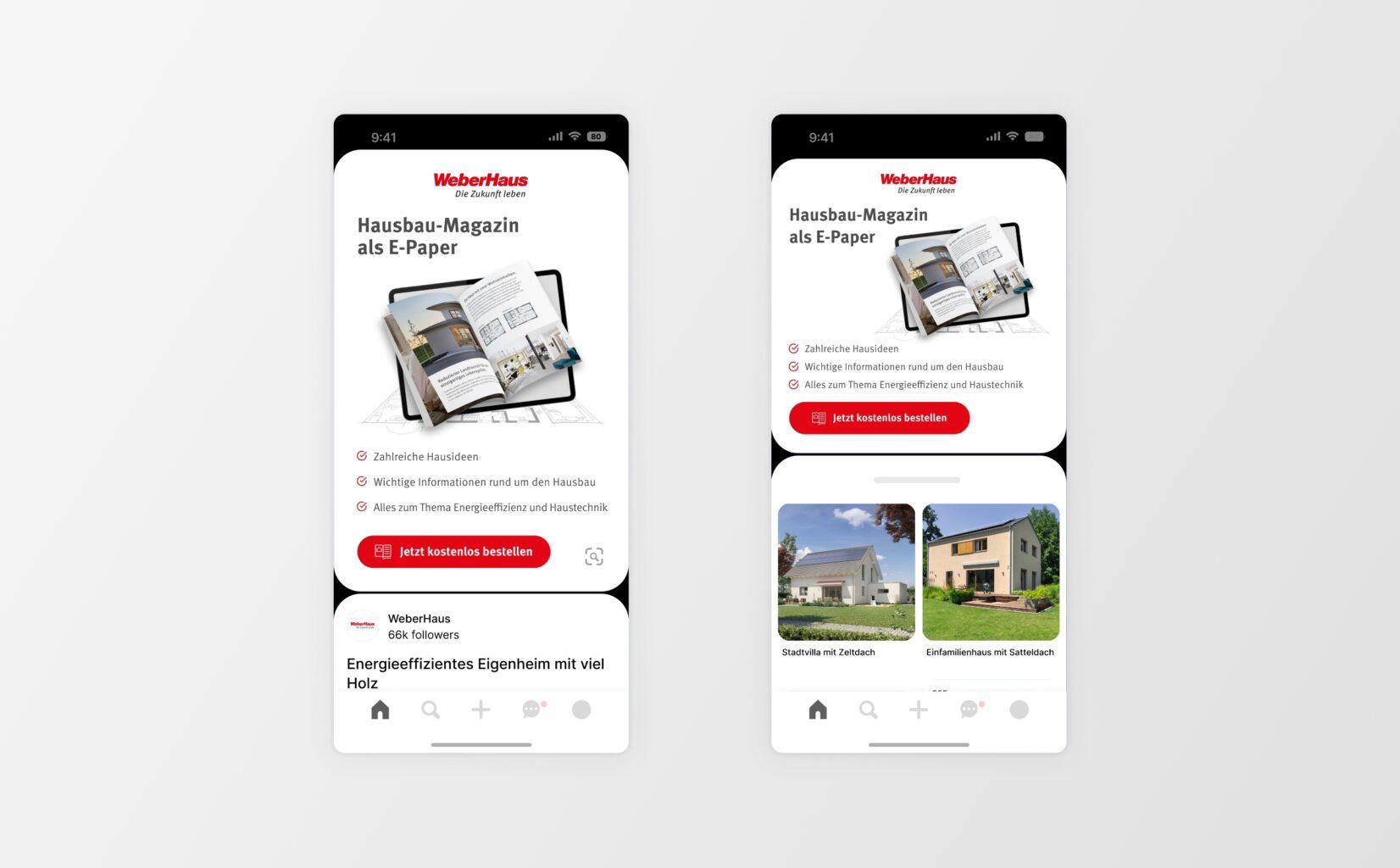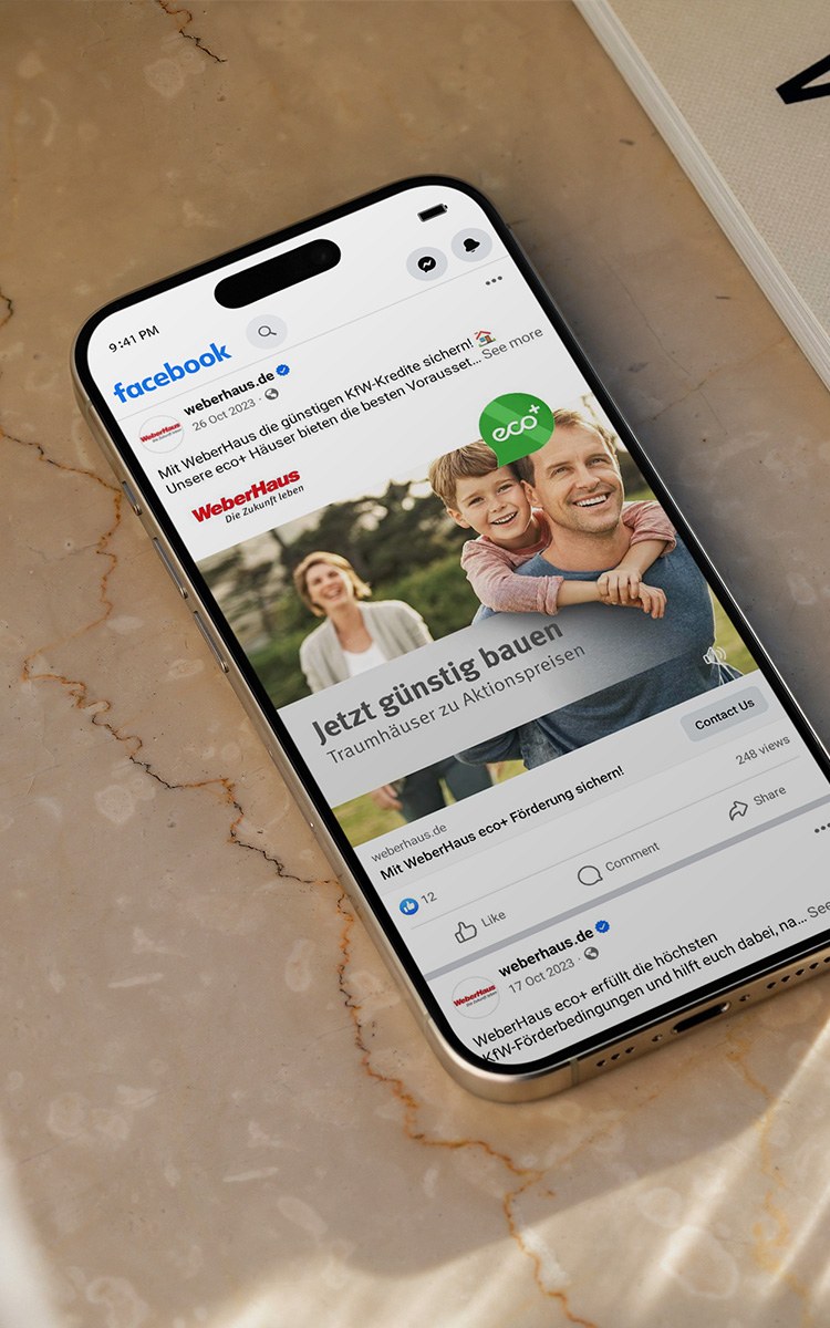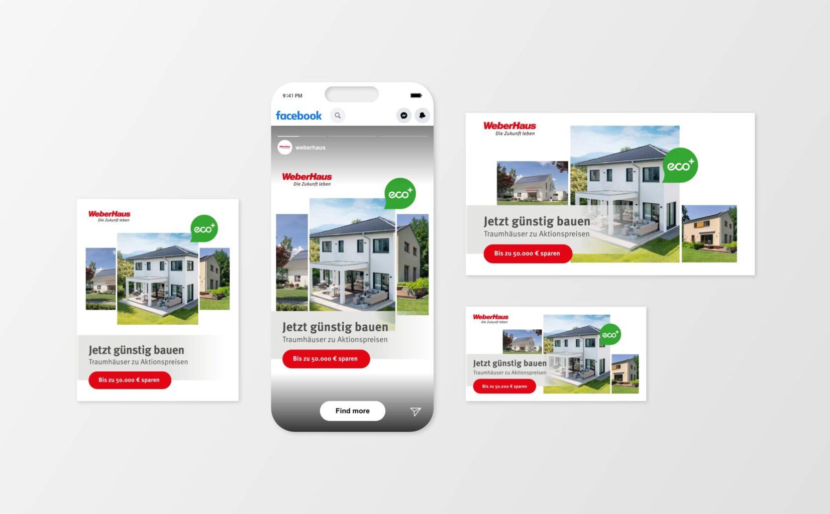 So hat es uns sehr gefreut, statische sowie animierte Anzeigen in verschiedenen Formaten und Versionen für die Social-Media-Kanäle von WeberHaus zu gestalten.